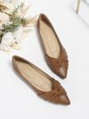 秋冬扭纹细节尖头芭蕾平底鞋,棕色优雅扭纹结纯色女式芭蕾平底鞋