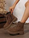 女式侧拉链设计靴子踝靴短款系带摩托车靴,时尚优雅,新款粗跟棕色和裸色短靴,适合秋冬,女靴