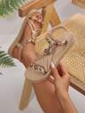 女士波西米亚风格金属串珠带凉鞋,优雅后带露趾平底沙滩鞋,香槟色,适合夏季