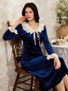 Côtesoire 女士法式优雅浪漫撞色蕾丝荷叶边睡裙,秋冬季舒适保暖