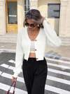 Serisse 素色落肩袖前排扣短款開衫