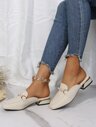 2025 秋季米色穆勒平底鞋,尖头女式露背一脚蹬乐福鞋,带超大蝴蝶结装饰,优雅百搭的一脚蹬凉鞋,适合春夏季