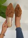 2025年秋季女士米色尖头穆勒鞋,金属扣装饰绒面革,一脚蹬乐福鞋,优雅百搭的露背平底鞋