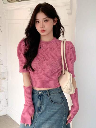 DAZY 女士短袖針織上衣和袖套 - 粉色 - 查看 1
