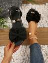 大码圆头蝴蝶结装饰女士一脚蹬拖鞋,优雅休闲沙滩凉鞋,夏季