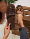 2025年秋季女士米色尖头穆勒鞋,金属扣装饰绒面革,一脚蹬乐福鞋,优雅百搭的露背平底鞋