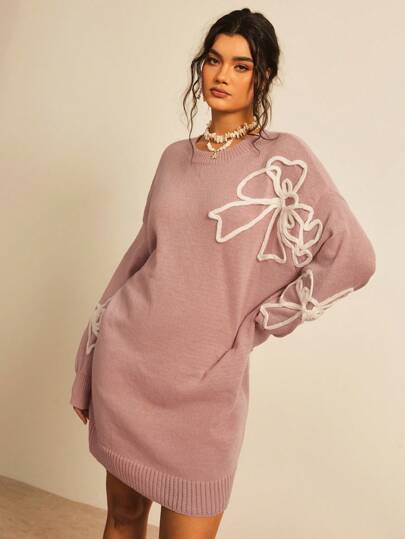 Freevana 女士粗针织开衫,商务休闲女士,节日装,秋冬乡村上衣 - 粉色 - 查看 3