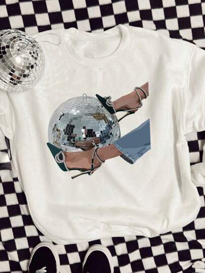 女士休闲金属球印花短袖 T 恤,夏季 - 白色 - 查看 1