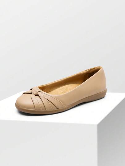 Women's Casual Pointed Toe Ballet Comfort Soft Slip On Flats Shoes - 杏色 - 查看 1