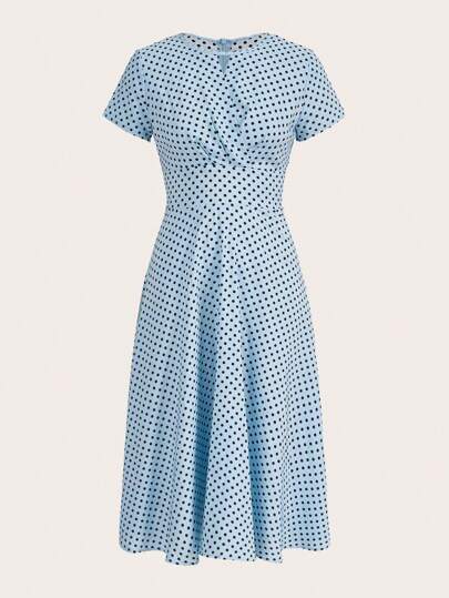 Women's Casual Polka Dot Print Short Sleeve Dress - 淺藍色 - 查看 1