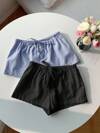 Comfortcana 2条装女士新款亚麻条纹短裤