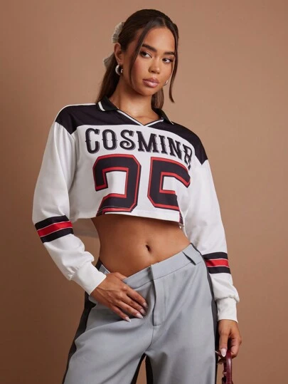 COSMINA 女士休闲 V 领宽松短款运动衫 - 白色 - 查看 6