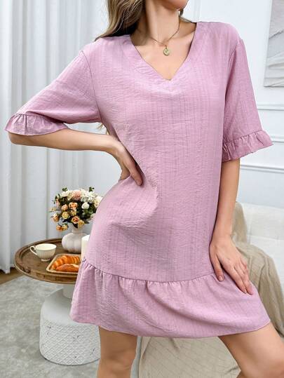 女士深 V 领休闲家居服连衣裙 - 藕粉色 - 查看 1