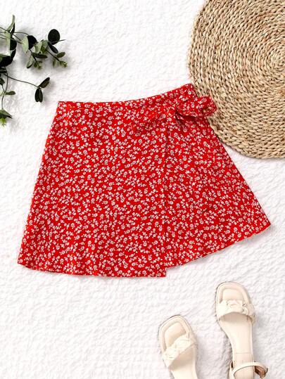 SHEIN Unity 女士碎花侧边打结休闲裙度假新年服装 - 紅色 - 查看 1