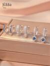 Hihho 6 件套优雅蓝宝石蓝色闪亮方晶锆石镶嵌经典双环吊坠耳环,女士珠宝礼品套装,适合约会、情人节礼物、妈妈、母亲、母亲节、礼物