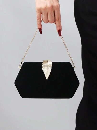 女士优雅天鹅绒盒状手拿包,奢华水钻装饰晚宴手提包,适合婚礼派对 - 黑色 - 查看 1