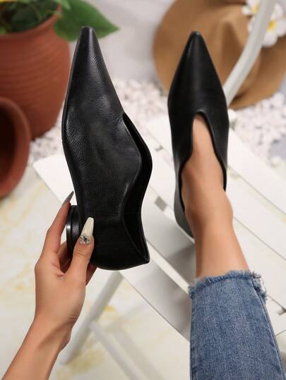 女士平底玛丽珍鞋,时尚黑色和米色,舒适尖头粗跟,低跟一脚蹬设计,适合工作、休闲、派对、角色装扮、春秋季 - 黑色 - 查看 1