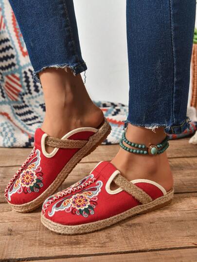 女士花卉图案平底鞋,休闲便鞋,轻便舒适 - 紅色 - 查看 1