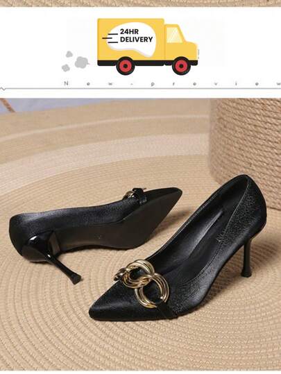 女士高跟鞋,黑色 8 厘米高跟鞋,优雅、时尚、百搭,适合户外 - 黑色 - 查看 1