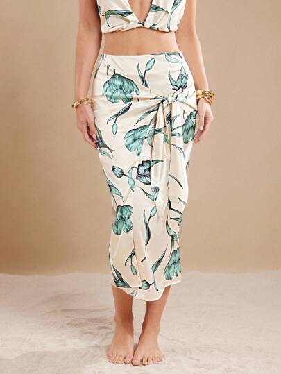 L'Amorae 女士节日花卉印花扭纹前中长裙 - 彩色 - 查看 1