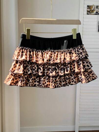 Comfortcana 女式豹纹荷叶边下摆半身裙,夏季时尚 - 彩色 - 查看 1