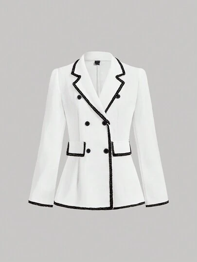 SHEIN MOD 女式长袖白色西装外套,配黑色滚边,优雅,秋冬西装外套,女警服装,外出,返校,早午餐,办公室,工作 - 白色 - 查看 1