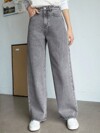 EMERY ROSE 女士休闲百搭黑色高腰阔腿宽松梭织牛仔裤,适合所有季节