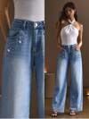 EMERY ROSE 女士宽松高腰阔腿编织休闲百搭百搭黑色牛仔裤,适合所有季节