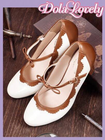Dola Lovely 女士粉色圆头高跟玛丽珍鞋洛丽塔风格经典拼布图案情人节鞋 - 棕色 - 查看 4