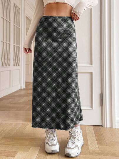 SHEIN EZwear 女性格紋印花針織裙 - 黑與白 - 查看 1