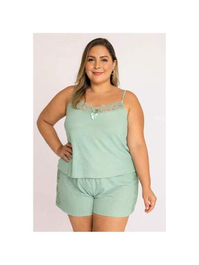 Women's Plus Size Ribbed Mid-Size Baby Doll Pajamas - 特奧斯格林 - 查看 1