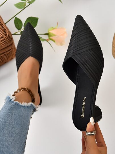 女性尖頭高跟鞋厚跟拖鞋,時尚適用於戶外,休閒穆勒鞋適合夏天 - 黑色 - 查看 1