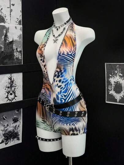 EgrlEra 女式性感露背深V虎纹夏季连体衣 - 彩色 - 查看 1