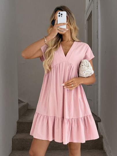 Easowa 女士短款休闲度假浪漫海滩粉色夏季连衣裙 - 粉色 - 查看 1