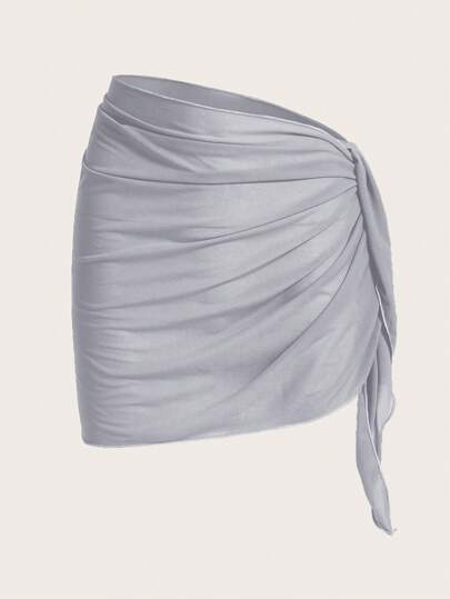 SHEIN Swim 女士纯色休闲沙滩装纱笼裙 - 淡紫色 - 查看 1