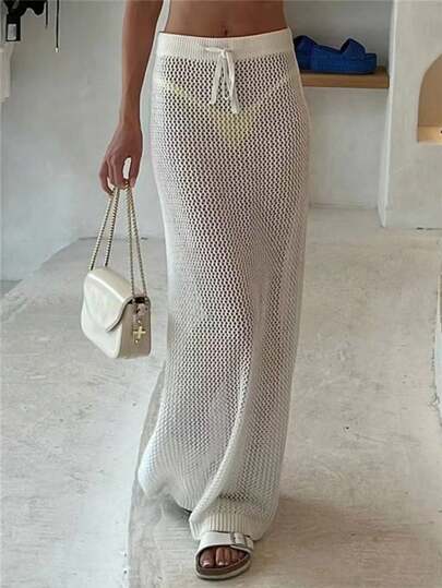INAWLY 女士純色簡約日常中空針織裙 - 白色 - 查看 1