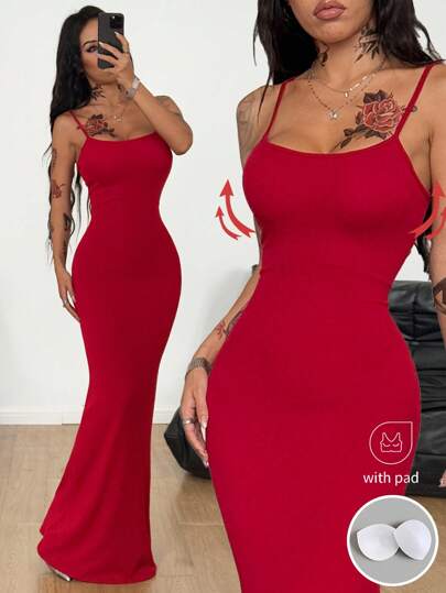 Coolane 女士春夏节日日常约会夜弹力长裙 - 酒紅色 - 查看 1