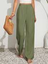 SHEIN PETITE 拼色抽绳腰长裤,纯色时尚,适合夏季