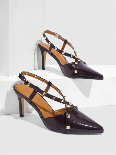 CUCCOO SZL 女士铆钉尖头时尚高跟鞋 - 酒紅色 - 查看 1