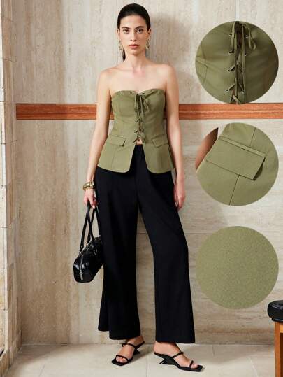Chiquease 女士梭织抹胸,带孔眼和收腰设计,通勤百搭 - 綠色 - 查看 2