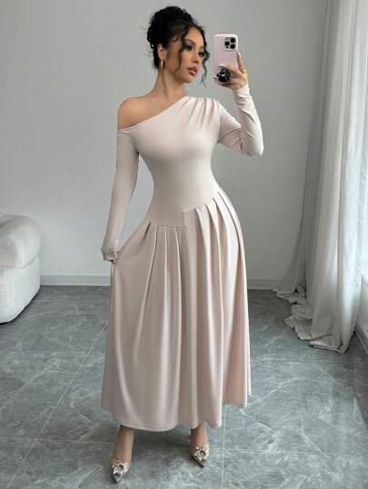 Elenzga 女士不对称荷叶边下摆长裙 - 杏色 - 查看 1