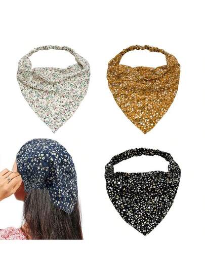 女士头巾 3 件套 清新花卉弹性头带 女士头巾,夏季田园风格发饰,学校用品,学院风 - 彩色 - 查看 10