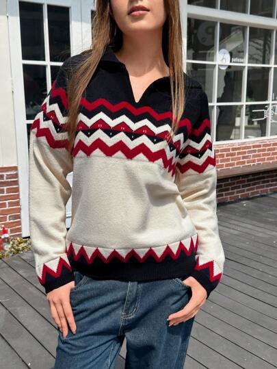 Jouncy 女士休闲宽松撞色落肩毛衣,适合秋季 - 黑色 - 查看 6