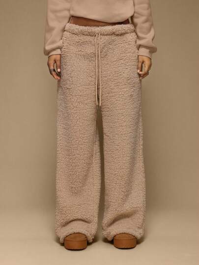 Forever 21 女士冬季休闲纯色羊羔绒羊毛裤 - 杏色 - 查看 1