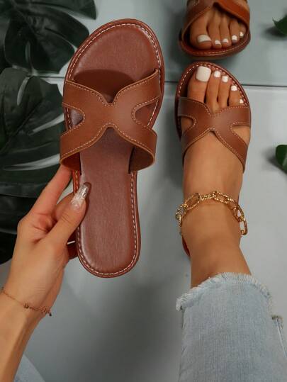 女士舒服鏤空平底優雅夏天涼拖 - 棕色 - 查看 1