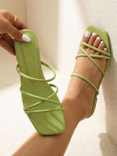 planare 女士交叉涼拖,時尚綠色平底涼鞋 - 綠色 - 查看 1