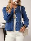 EMERY ROSE 女式长袖单排扣荷叶边下摆牛仔夹克