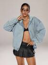 女士休闲宽松双拉链短款牛仔连帽外套,百搭港式春季款