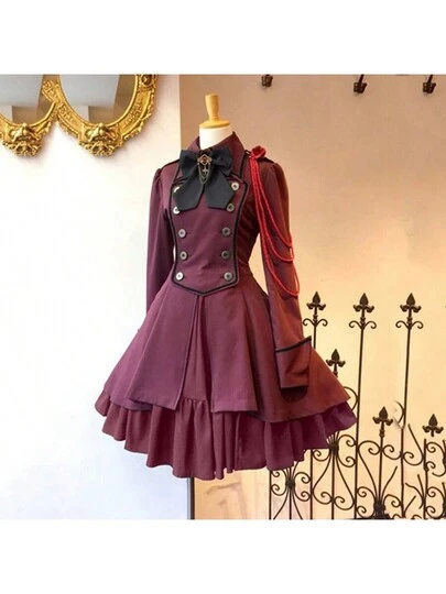 Gothic Dress For Women Vintage Steampunk Dress - 紅色 - 查看 2