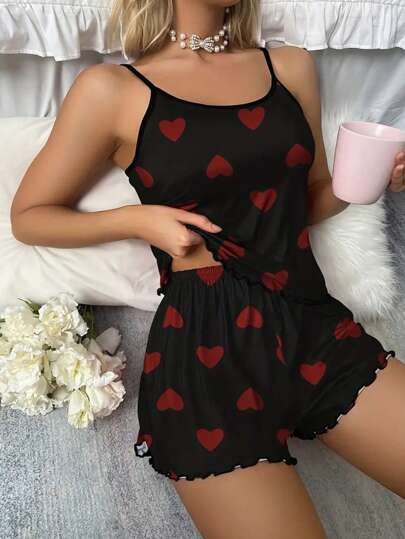 女性流行心形印花背心短褲睡衣套裝